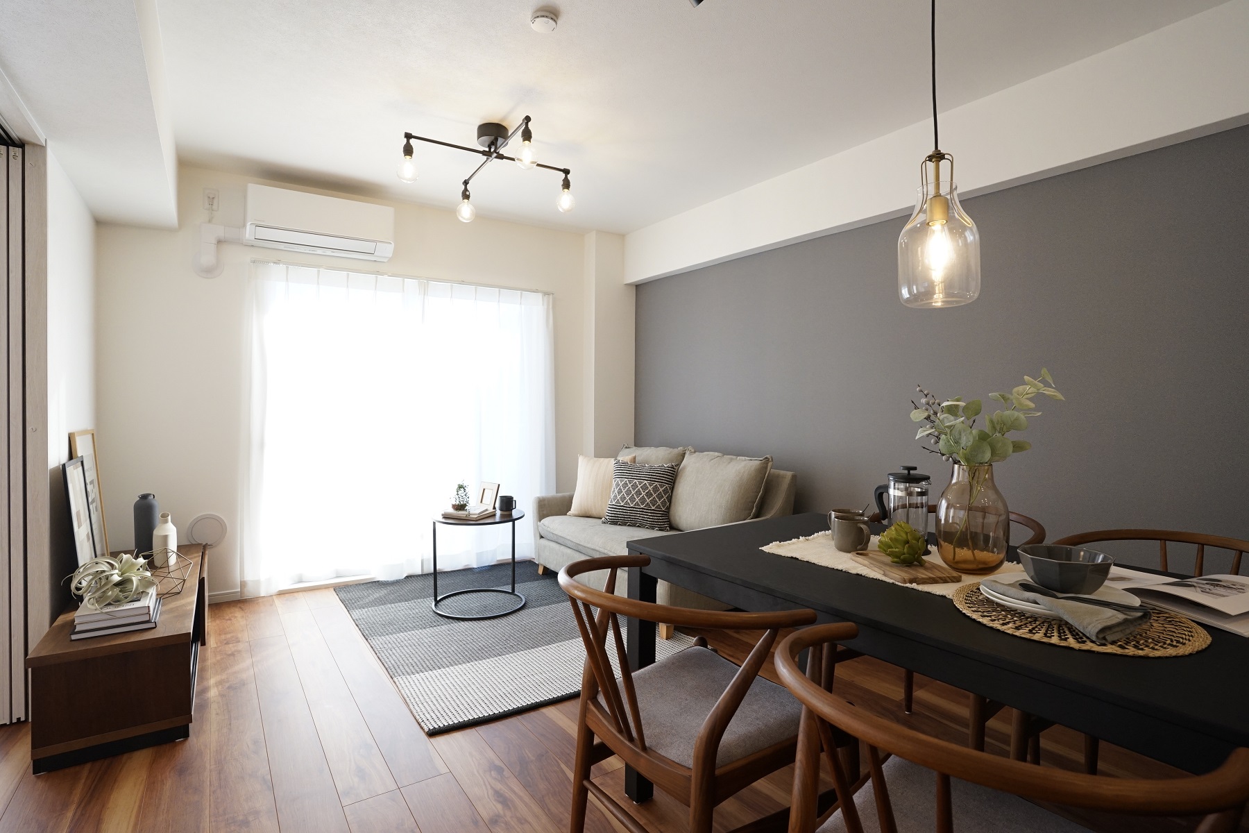 そして、昨今の不動産市場では、売りに出す物件の魅力を最大限まで引き出す方法としてホームステージングが注目されています。ホームステージングは、下の画像のように、売却や賃貸を予定している物件内に、家具やインテリア、照明などを配置することで、購入希望者が魅力的に感じるような空間を作り出す手法となります。購入希望者が内覧した時には、入居後の生活を具体的にイメージできるようになることから、「ここに住んでみたい」と思わせることができ、早期かつ高値での売却が期待できるとされているのです。