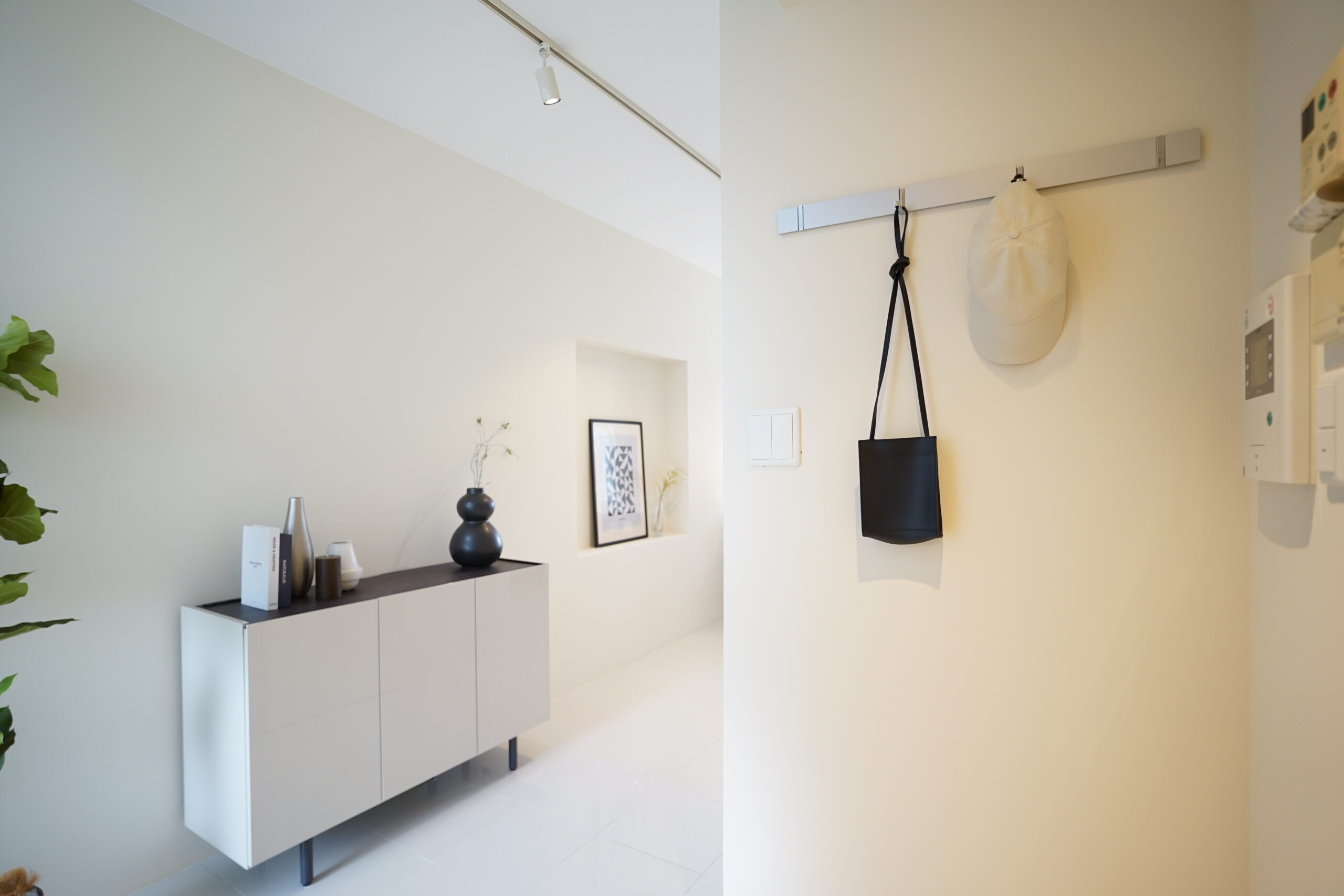 ホワイトを基調とした内装に、ウォールナットやブラックの家具を中心にプランニング。