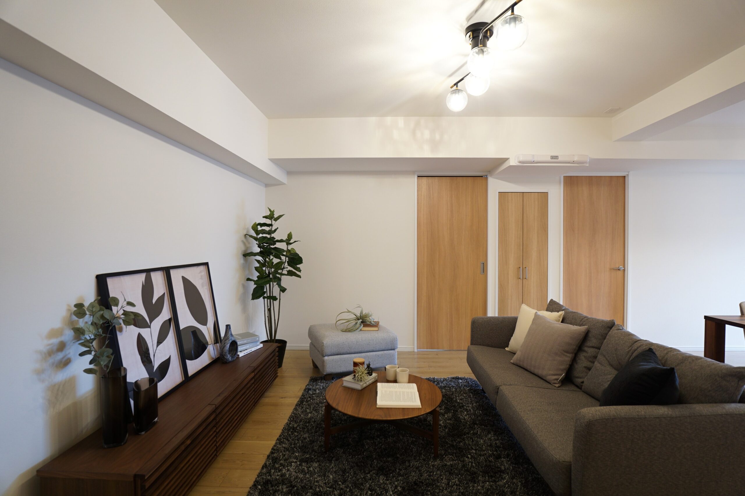 ウォールナット×グレーの上質な組み合わせで、穏やかさと洗練を感じる空間に仕上げました。