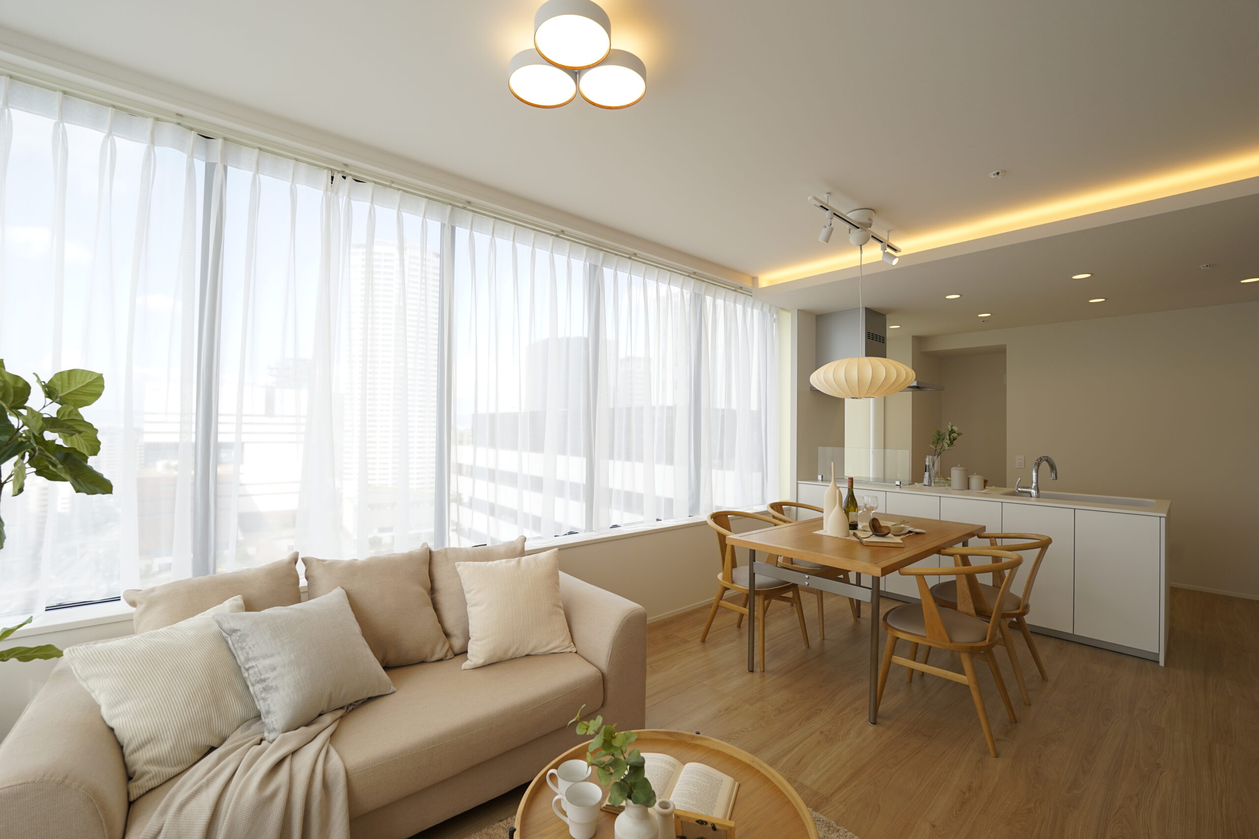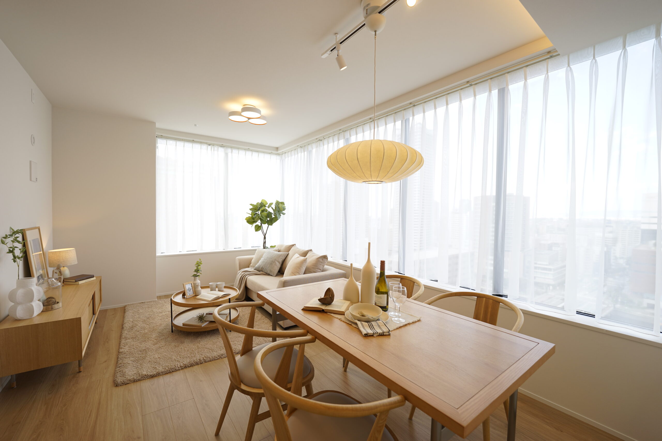 ナチュラルなテイストをご希望いただいた物件に対し、物件の販売価格にふさわしい上質さが伝わるよう、カジュアルに寄りすぎないコーディネートを心がけました。家具にはステンレスや質感のある素材を積極的に採用し、小物も空間に高級感をもたらすものを選定しています。