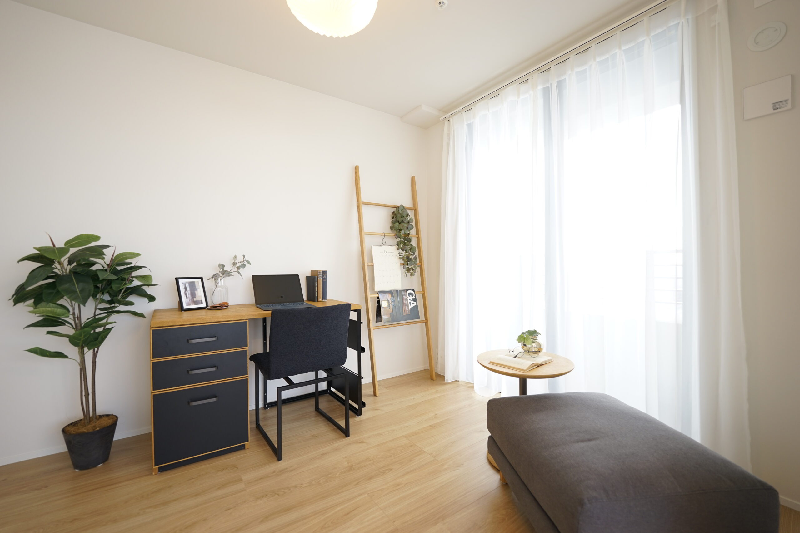 リビングは明るい木目と素材感のある家具で統一し、柔らかく親しみのある雰囲気を演出。洋室は大人の書斎をイメージし、落ち着いたモダンな空間に仕上げました。