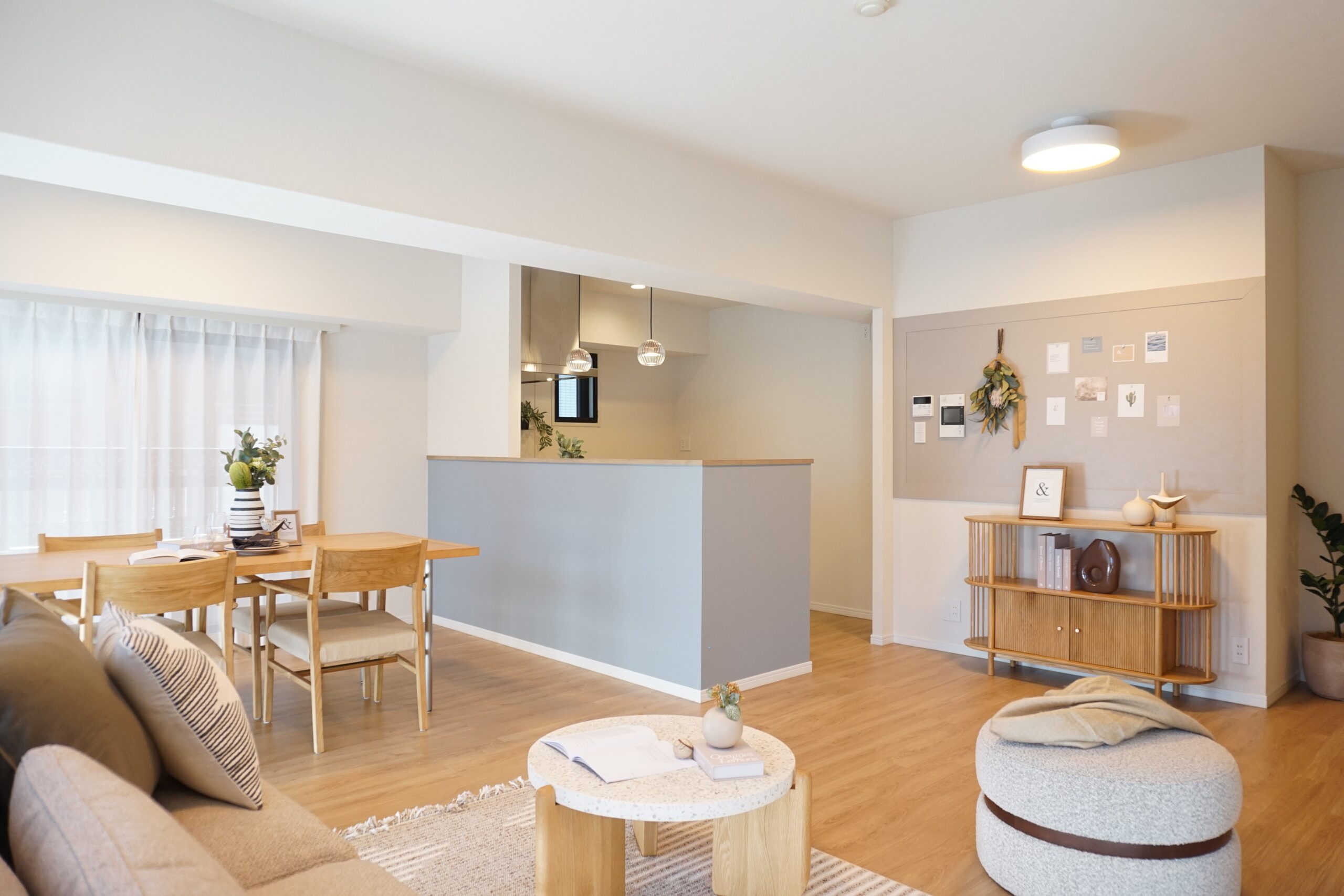 ファミリー層を想定し、日常の中で自然とくつろげる空間を目指してステージングしました。