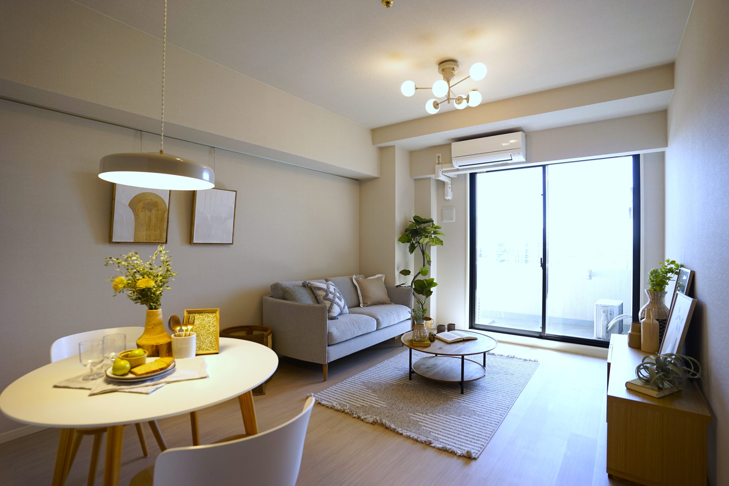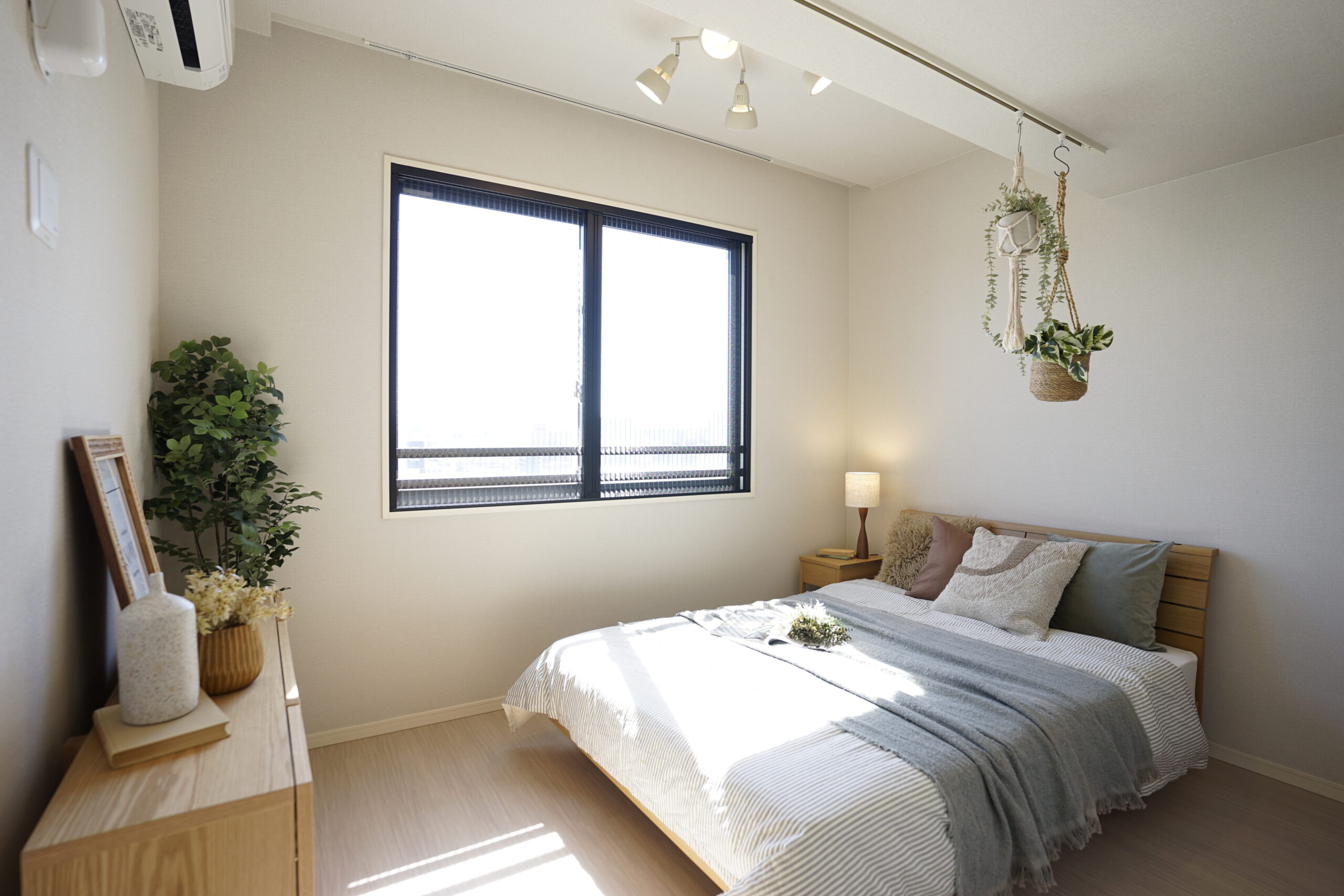 オークの家具をベースにした、ナチュラルテイストのお部屋にコーディネート。バランス良くホワイトを入れて、清潔感のある洗練された印象に仕上げました。